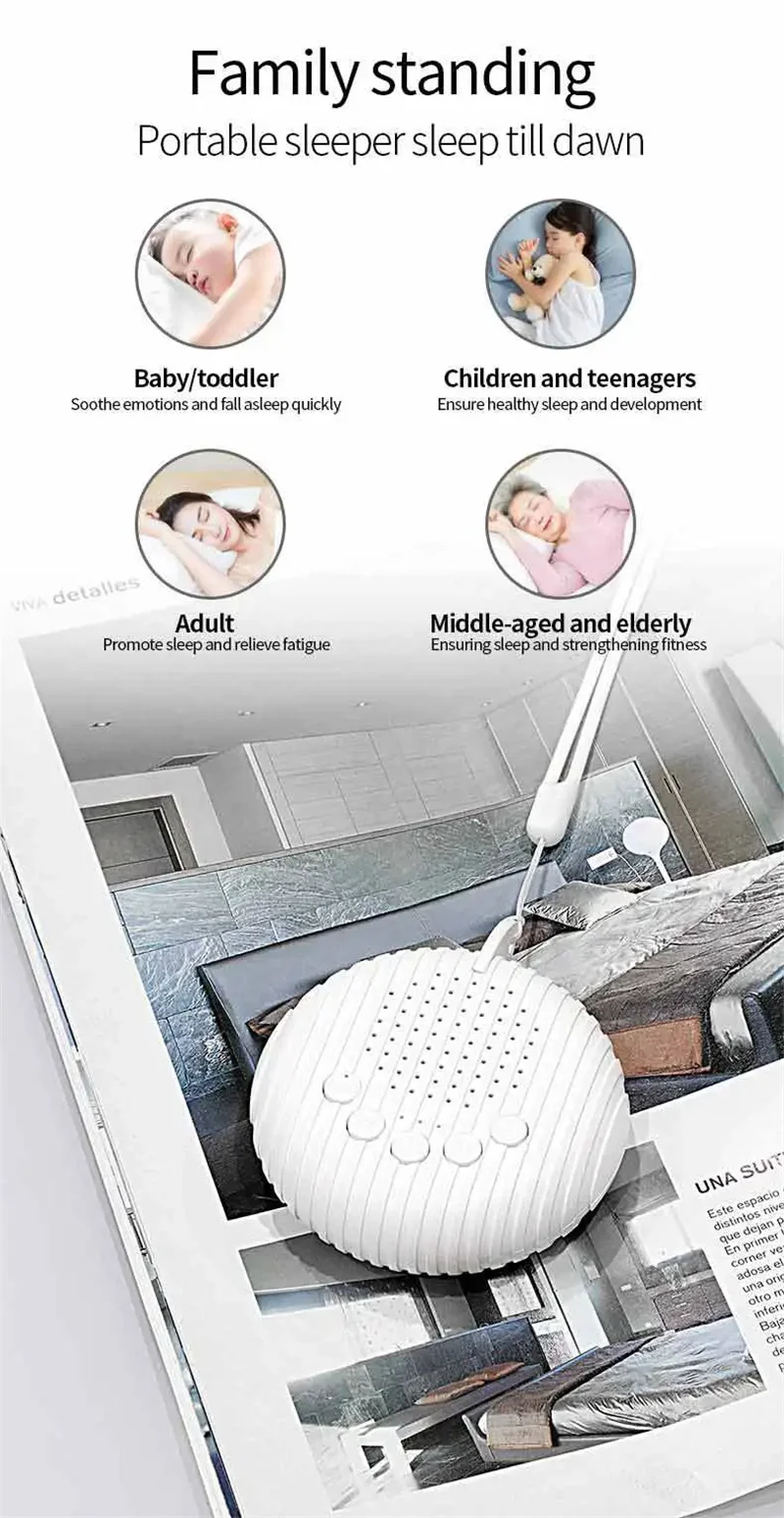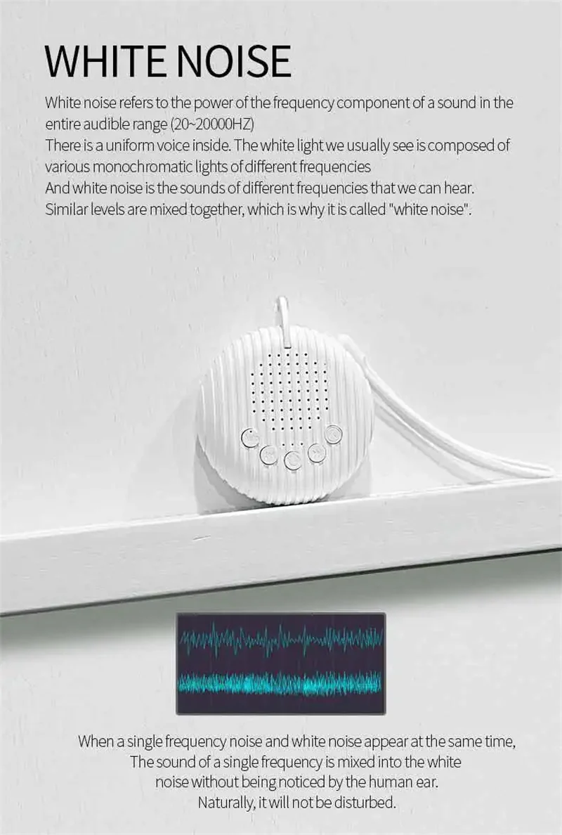 【Compact and Portable】Compact and lightweight, very convenient to carry around and suitable for travel use; comes with a lanyard, you can hang the sleep machine on baby buggy or other place to save space.