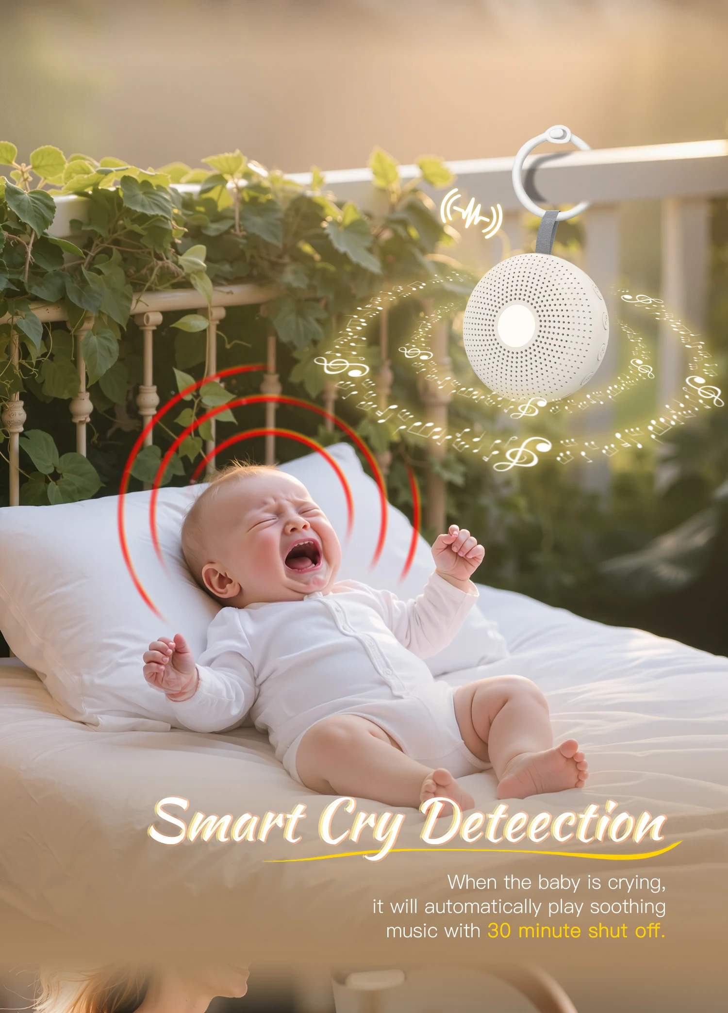 [Smart Cry Detection & Timer Function] A true parenting helper! The smart cry detection feature automatically activates the device when it senses a baby’s cry, instantly playing soothing sounds to calm your little one. Set the auto-off timer to conserve battery—perfect for nap time or overnight use without manual shutdown.