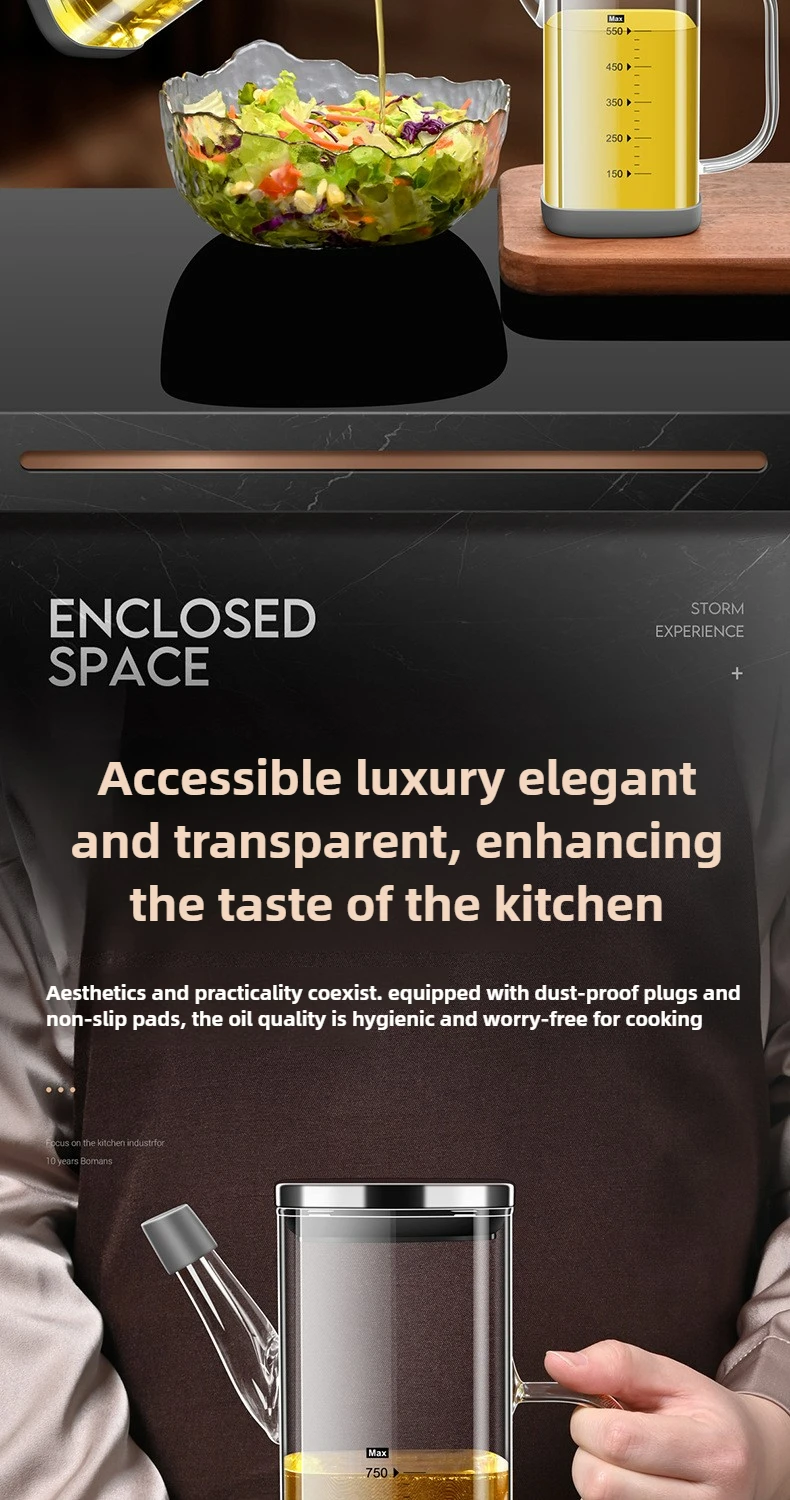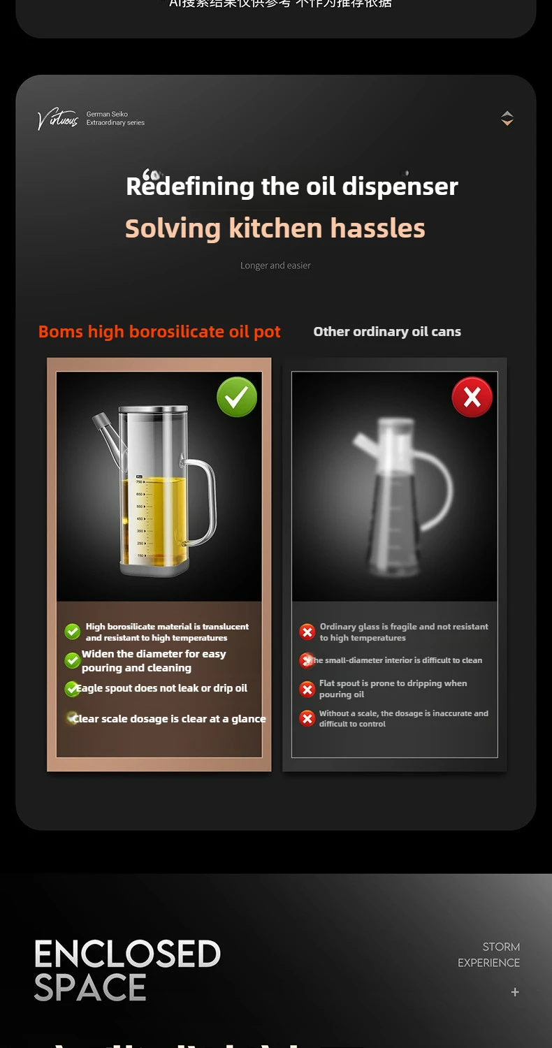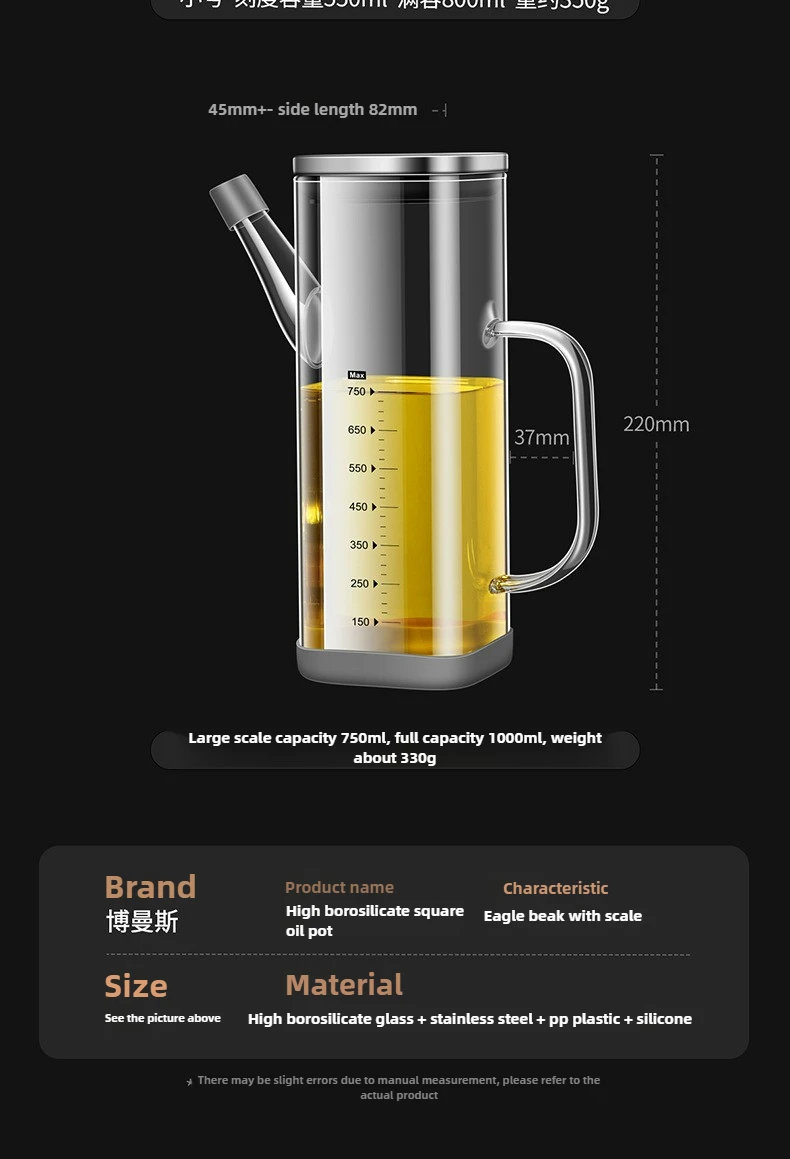 High Borosilicate Glass Oil Bottle Kitchen Essential Non Drip Oil Bottle for Vinegar Soy Sauce and Cooking Oil